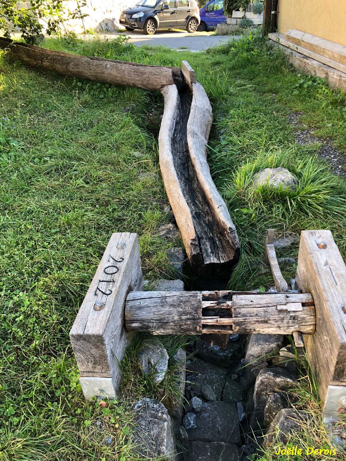 L’aqueduc d’Aël capte les eaux du torrent du Grand Eyvia, dont le régime hydrologique est compatible avec une exploitation saisonnière. Son tracé, partiellement reconstitué, combine sections excavées et aménagements en terrasse sur environ 6 km. La pente moyenne (≈ 2,6 %) et la section hydraulique permettent d’estimer un débit de 150 à 180 l/s, supérieur aux besoins domestiques supposés.